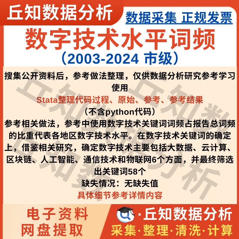 【普通数据】市级数字技术水平指标2024-2003词频/占比Stata与Excel版结果说明