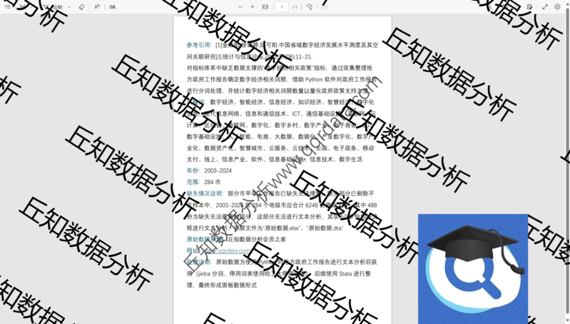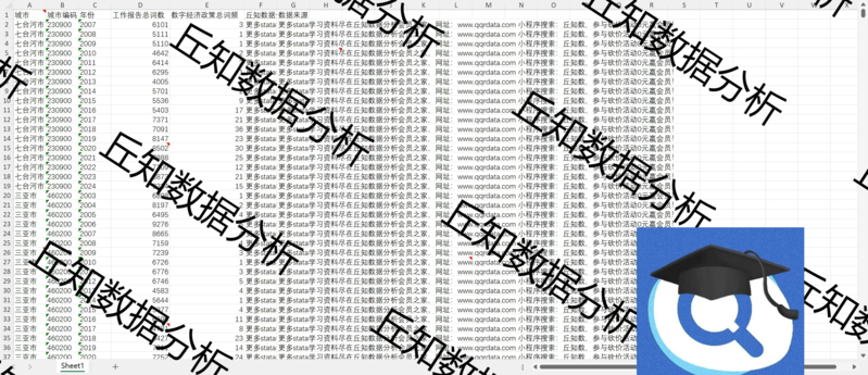 丘知数据分析会员之家,致力于提供高质量的社科数据搜集整理与分析服务,是国内领先的社科类数据服务商。在科研数据领域,我们认真对待每一位同学和老师的反馈,每年整理更新数千个变量指标,已累计服务数万科研工作者,在满足广大会员科研数据需求的同时全力提升售后服务质量,力求为大家提供高质量的社科数据服务! 在研究专题方面,我们搜集整理制作的数据专题包括但不限于:上市公司:管理层及治理、研发创新、投资融资、供应链、信息披露、会计审计税收、数字化、智能化、新质生产力、绿色发展、文本分析专题等;区域研究:空间计量、市场经济、科技创新、绿色发展、数字化、智能化、新质生产力、文本分析专题等。 丘知数据分析会员之家,每年更新推送近千个数据栏目,所有数据均支持单独购买,开通会员则可享受每日免费下载次数,欢迎老师同学们浏览订阅!如果您有定制需求也可以联系我们。