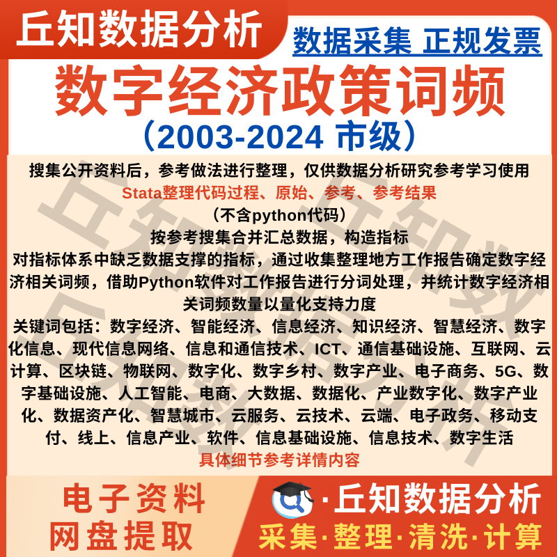 【普通数据】数字经济政策词频统计2024-2003市级文本分析数据Stata整理含说明