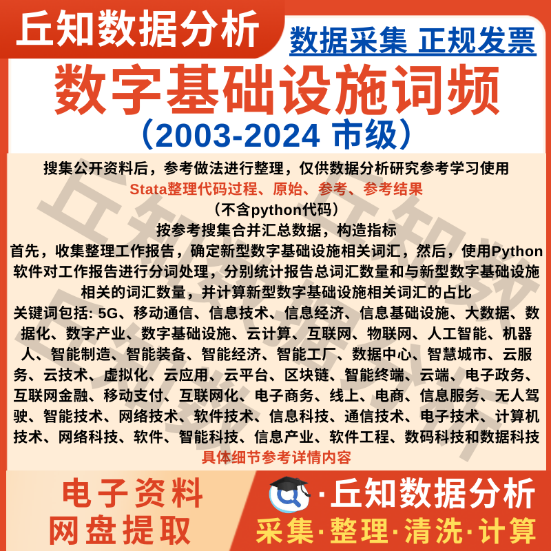 【普通数据】数字基础设施词频统计2003-2024市级文本分析数据Stata整理含说明