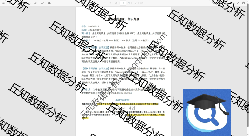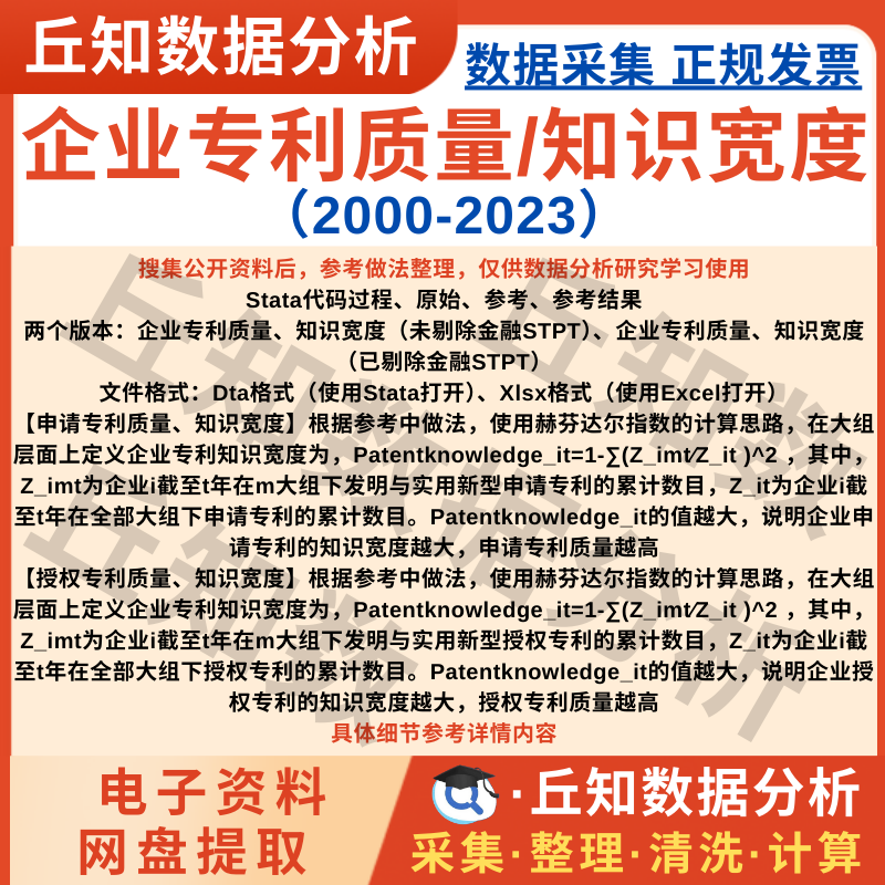 【普通数据】企业专利质量/知识宽度2023-2000年含stata代码过程 上市公司数据