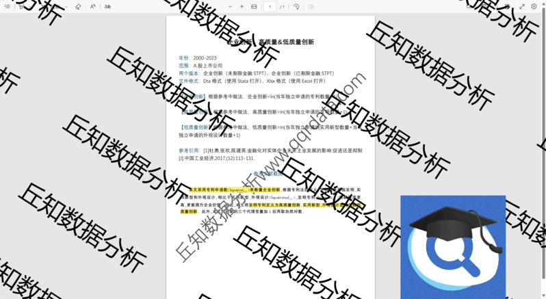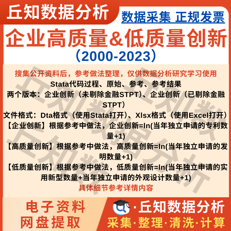【普通数据】企业创新、高质量&低质量创新2023-2000上市公司数据含stata代码