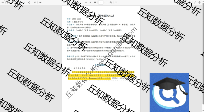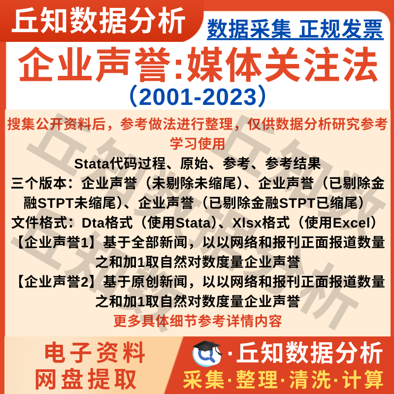 【普通数据】企业声誉媒体关注法2023-2001年上市公司Stata面板数据含参考说明