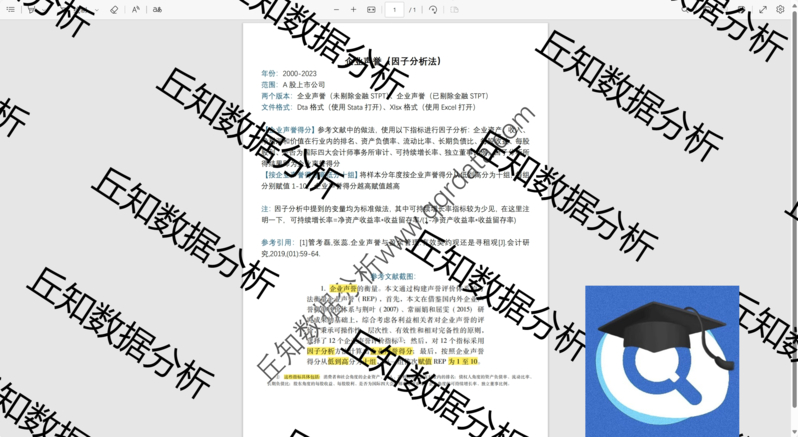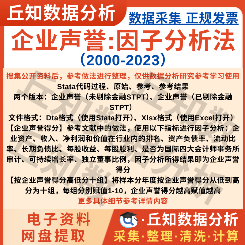 【普通数据】企业声誉:因子分析法2023-2000上市公司数据含Stata代码参考说明