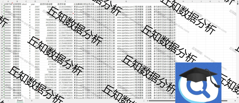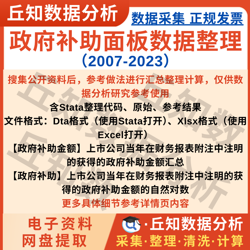 【普通数据】政府补助面板数据整理2023-2007含Stata整理代码结果dta xlsx格式
