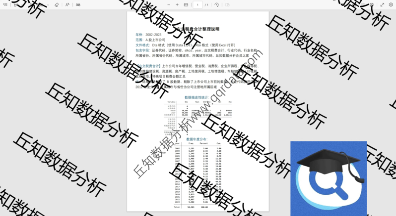 【普通数据】上市公司税收数据2023-2002年Stata整理含说明原始已匹配行业变量