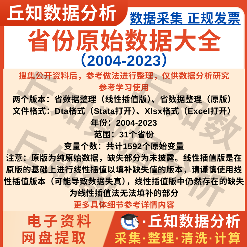【普通数据】省份原始数据大全2023-2004含线性插值版&原版说明StataExcel文件