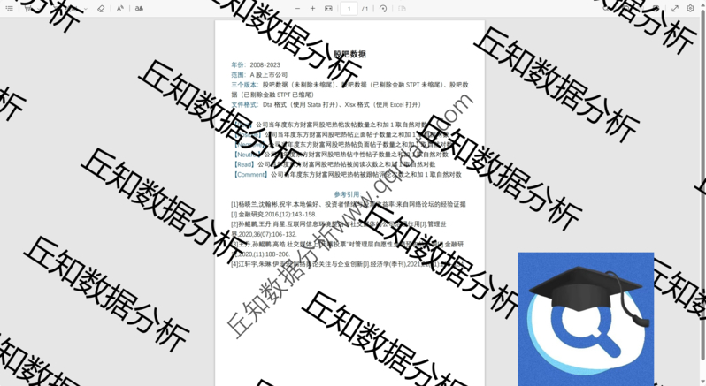 丘知数据分析会员之家,致力于提供高质量的社科数据搜集整理与分析服务,是国内领先的社科类数据服务商。在科研数据领域,我们认真对待每一位同学和老师的反馈,每年整理更新数千个变量指标,已累计服务数万科研工作者,在满足广大会员科研数据需求的同时全力提升售后服务质量,力求为大家提供高质量的社科数据服务! 在研究专题方面,我们搜集整理制作的数据专题包括但不限于:上市公司:管理层及治理、研发创新、投资融资、供应链、信息披露、会计审计税收、数字化、智能化、新质生产力、绿色发展、文本分析专题等;区域研究:空间计量、市场经济、科技创新、绿色发展、数字化、智能化、新质生产力、文本分析专题等。 丘知数据分析会员之家,每年更新推送近千个数据栏目,所有数据均支持单独购买,开通会员则可享受每日免费下载次数,欢迎老师同学们浏览订阅!如果您有定制需求也可以联系我们。
