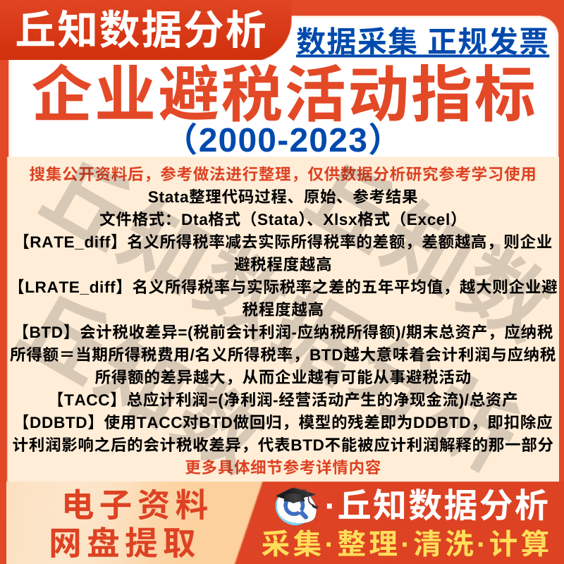 【普通数据】上市公司避税活动指标2023-2000数据ExcelDta文件含stata代码过程