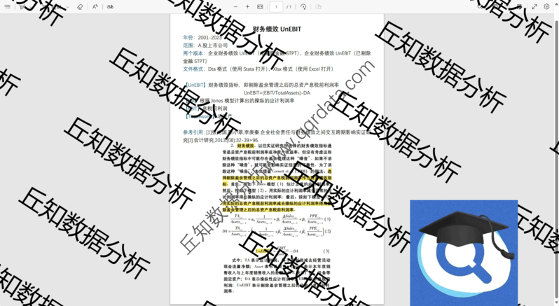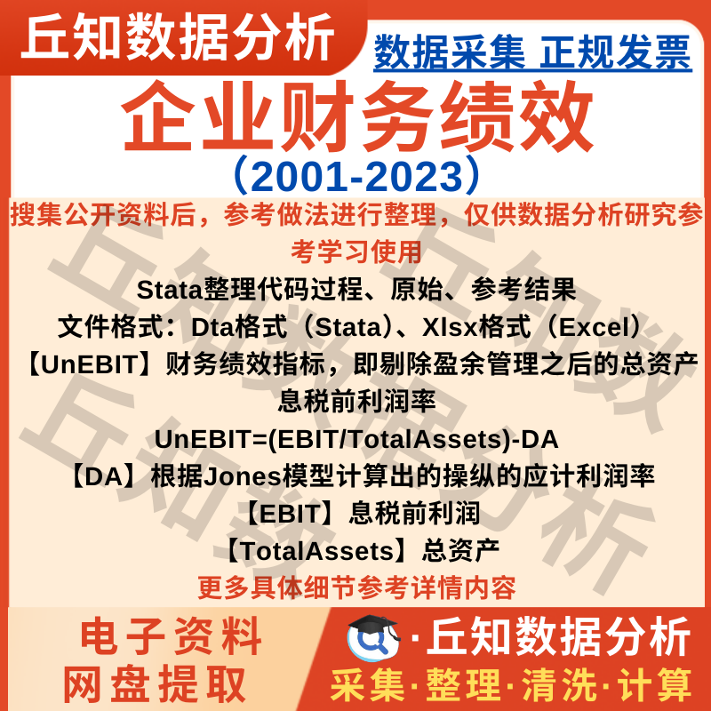【普通数据】财务绩效代理变量UnEBIT2023-2001 Jones模型DA EBIT/TotalAssets