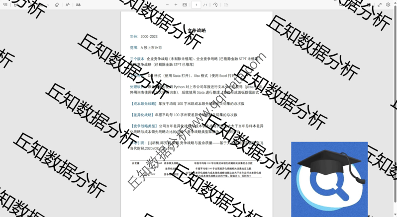【普通数据】上市公司竞争战略指标2023-2000年含Stata代码差异化成本领先战略