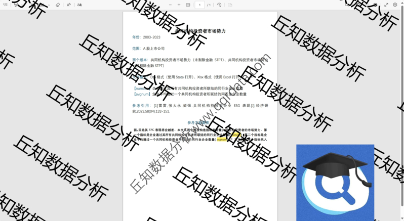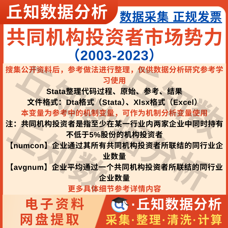 【普通数据】共同机构投资者市场势力2023-2003机制变量Stata代码上市公司数据