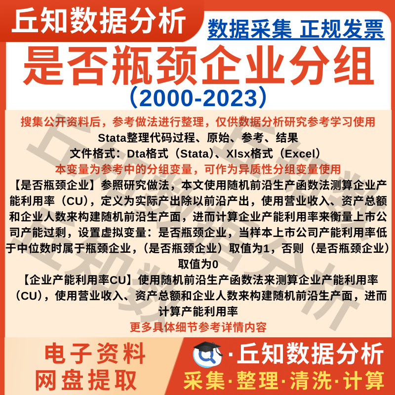 【普通数据】是否瓶颈企业分组变量2023-2000含Stata代码参考上市公司异质数据