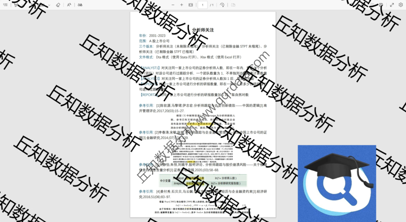 【普通数据】分析师关注数据2023-2001分析师人数研报数量含Stata整理代码参考