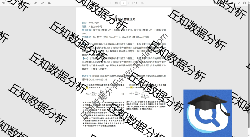【普通数据】审计师工作量压力指标2023-2000含Stata代码参考结果上市公司数据