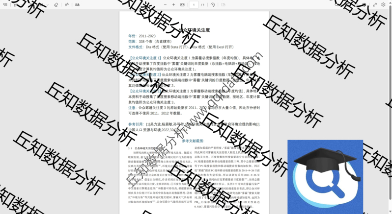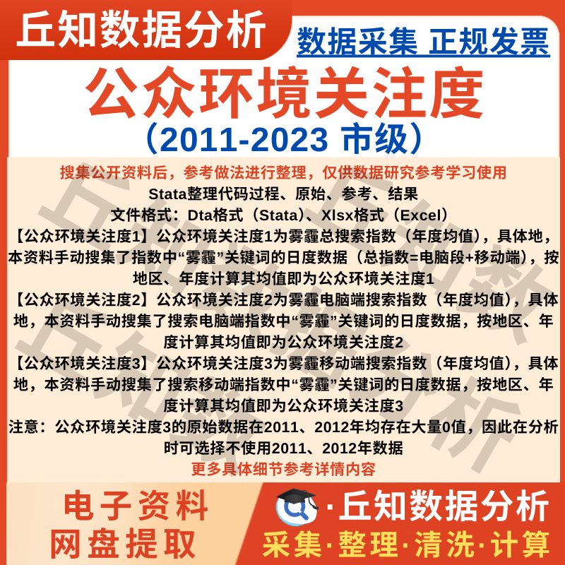 【普通数据】市级公众环境关注度数据2023-2011年搜索指数日度年度Excel Stata