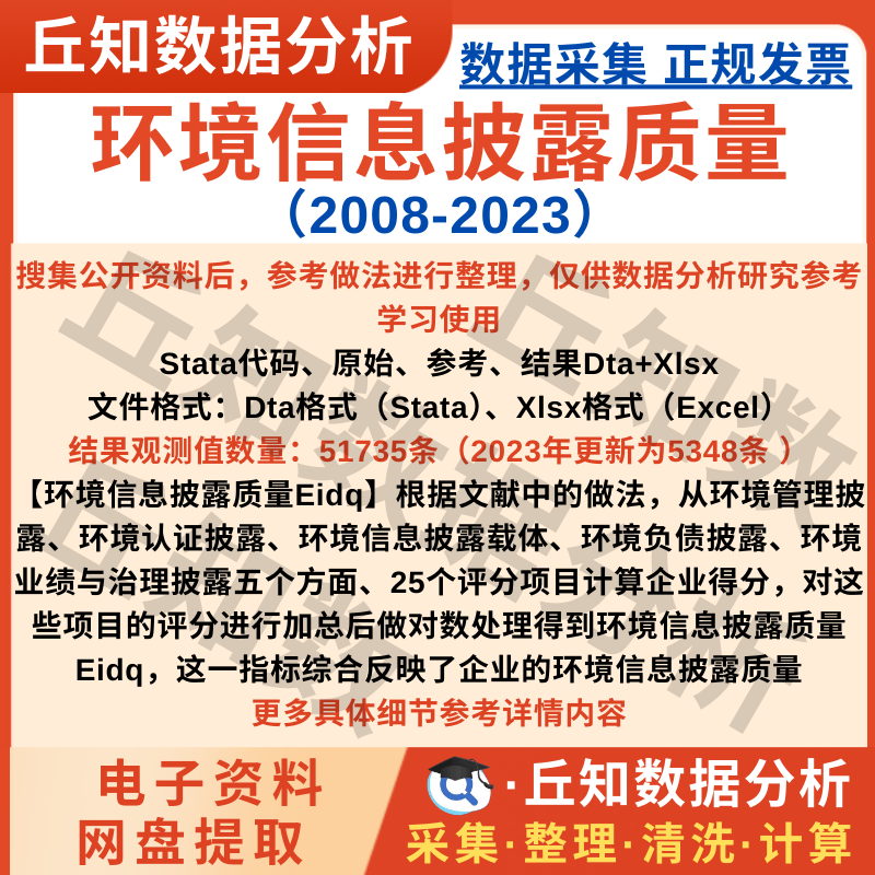 【普通数据】企业环境信息披露质量Eidq计算2023-2008stata代码含剔除缩尾版本