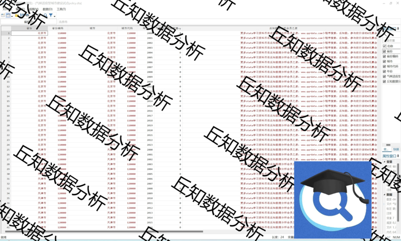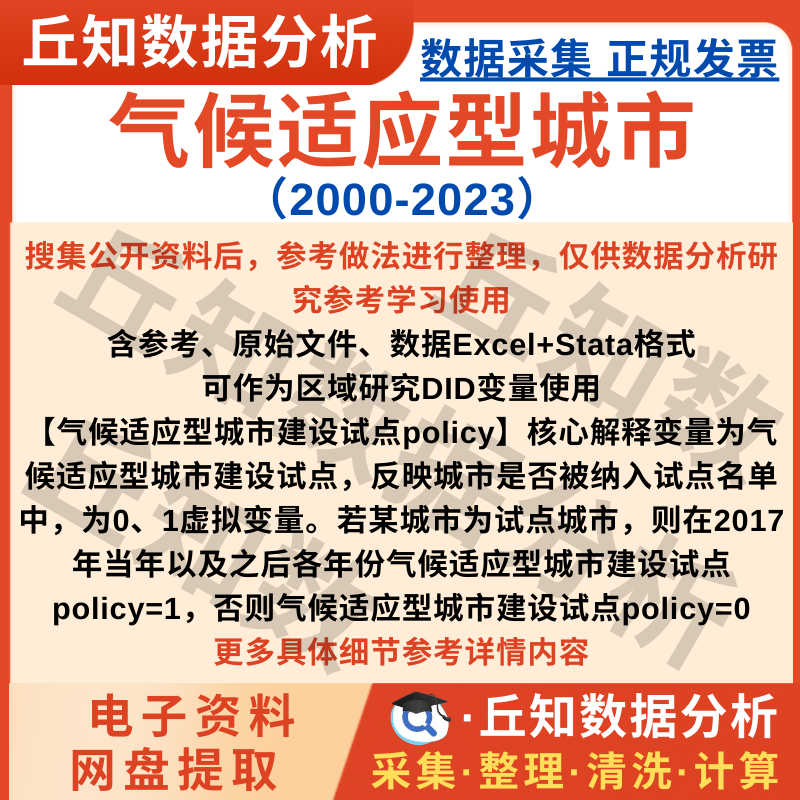 【普通数据】气候适应型城市2023-2000年数据DID01虚拟变量含Stata、Excel格式