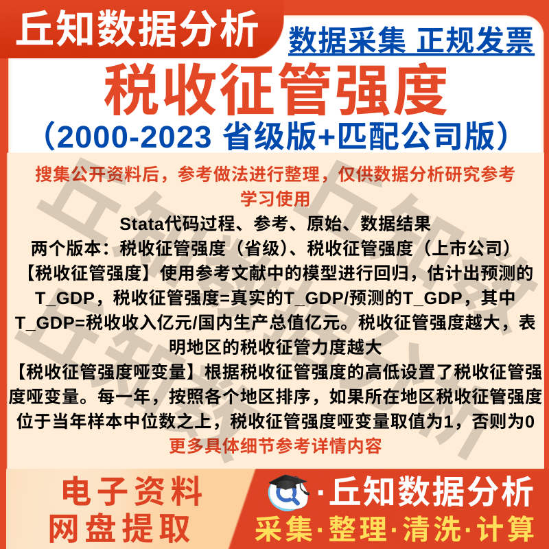 【普通数据】税收征管强度计算2023-2000含stata代码命令含公司版本与省级版本