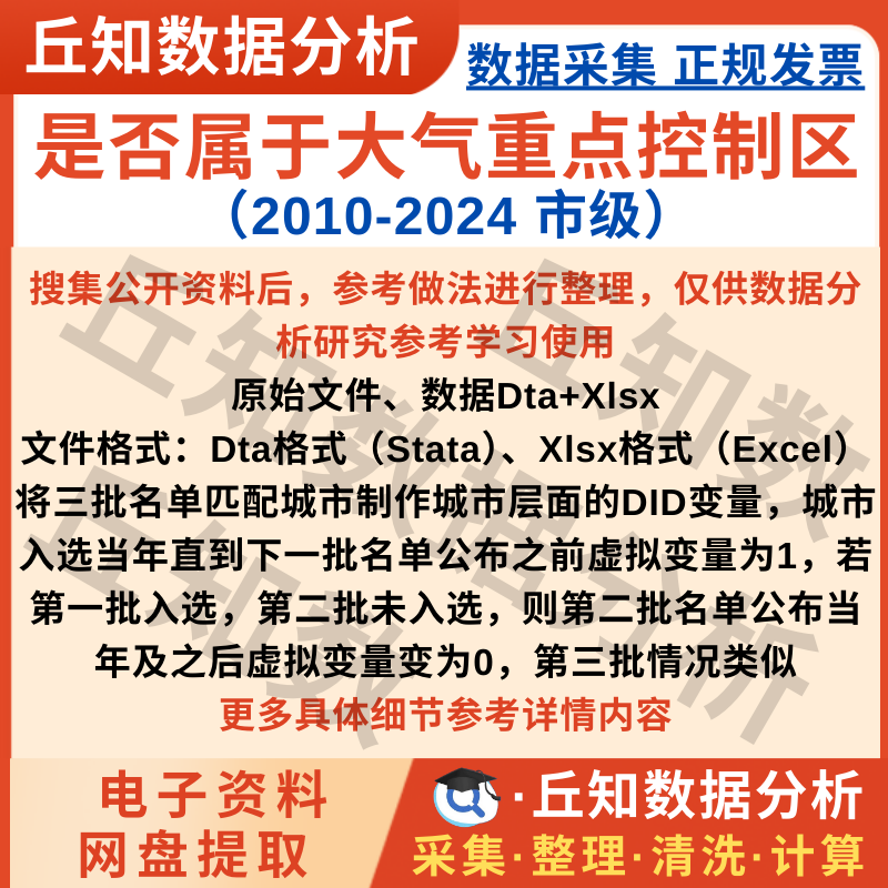 【普通数据】是否属于大气重点控制区2024-2010市级数据DID含Stata、Excel格式