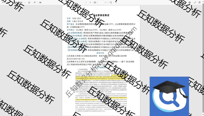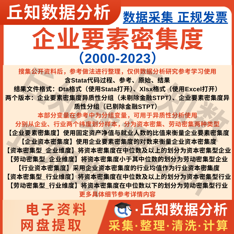 【普通数据】企业要素密集度2023-2000资本/劳动密集型stata代码上市公司数据