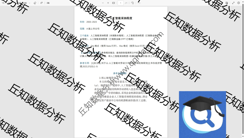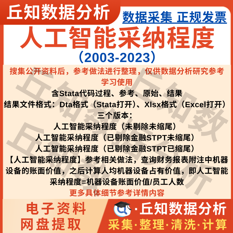 【普通数据】人工智能采纳程度2023-2003含Stata计算代码企业人均机器设备价值