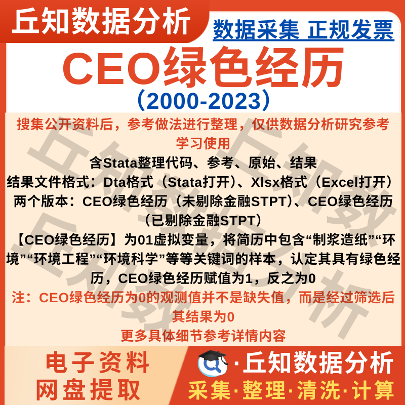 【普通数据】CEO绿色经历2023-2000虚拟01变量上市公司数据含Stata代码与参考