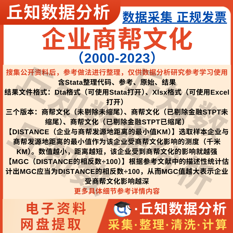 【普通数据】企业商帮文化2023-2000年上市公司数据含Stata代码Do参考结果Dta