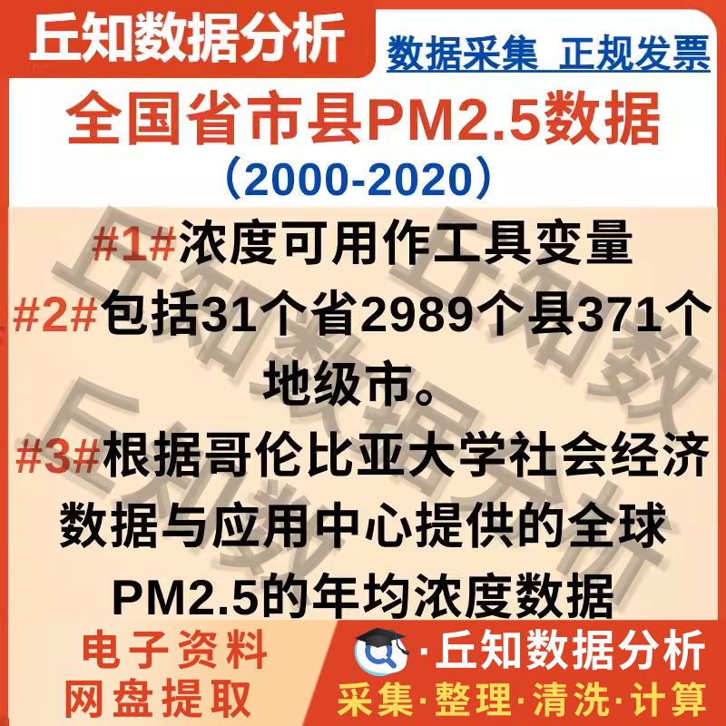 【普通数据】PM2.5数据全国省市县2000-2020年 工具变量.面板数据Excel Dta