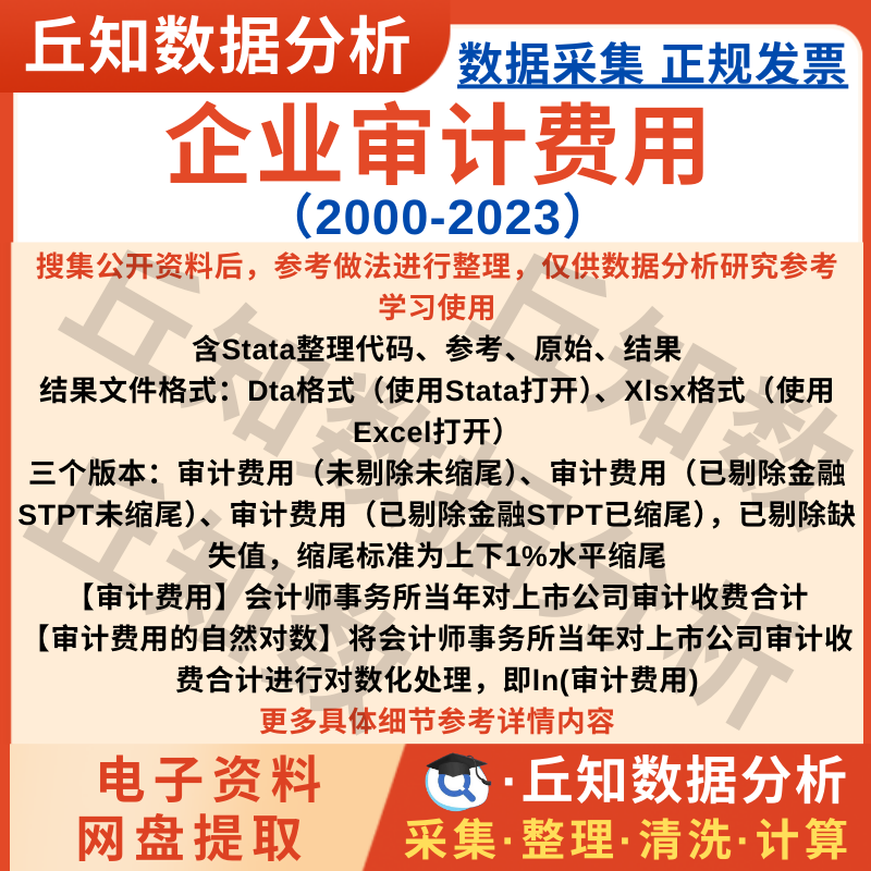 【普通数据】企业审计费用2023-2000上市公司数据两表互补含剔除版已匹配行业
