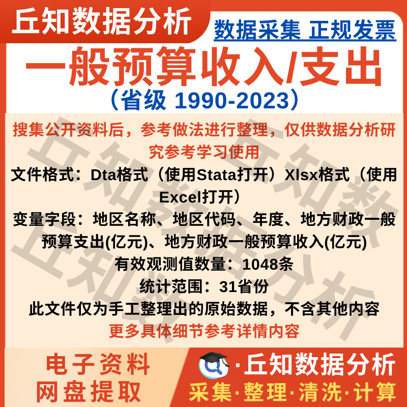 【普通数据】各省一般预算收入/支出数据2023-1990年Stata面板数据含Excel版本