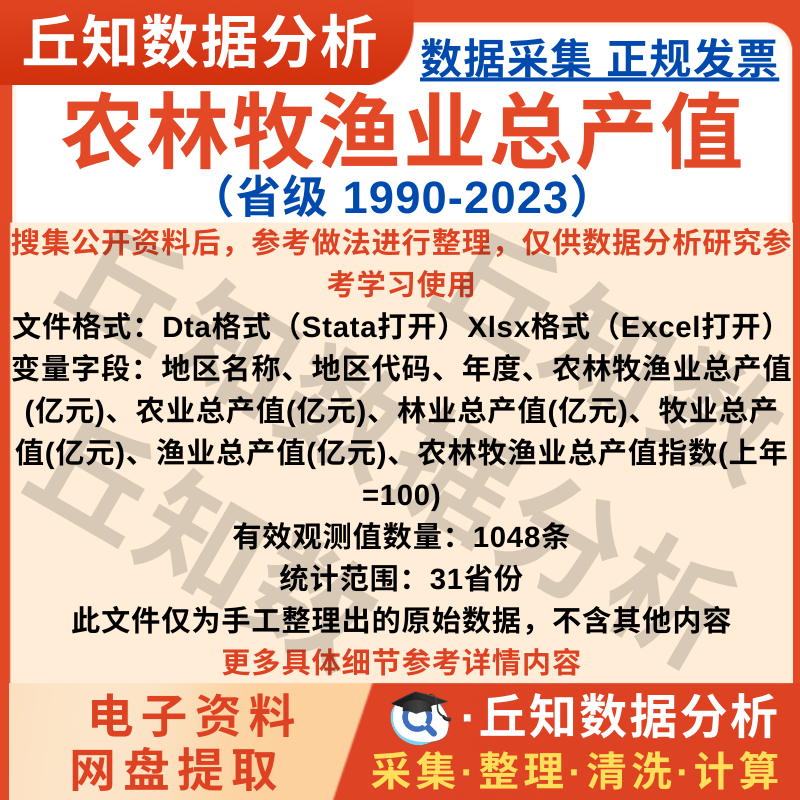 【普通数据】各省农林牧渔业产值数据2023-1990年含四个分项产值Stata面板数据