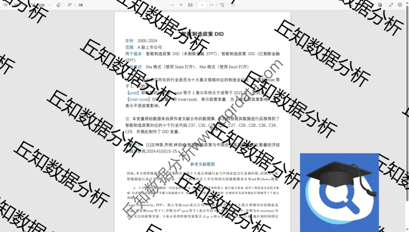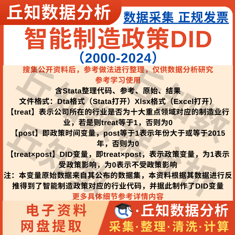 【普通数据】智能制造政策DID变量2024-2000上市公司数据含Stata代码参考结果