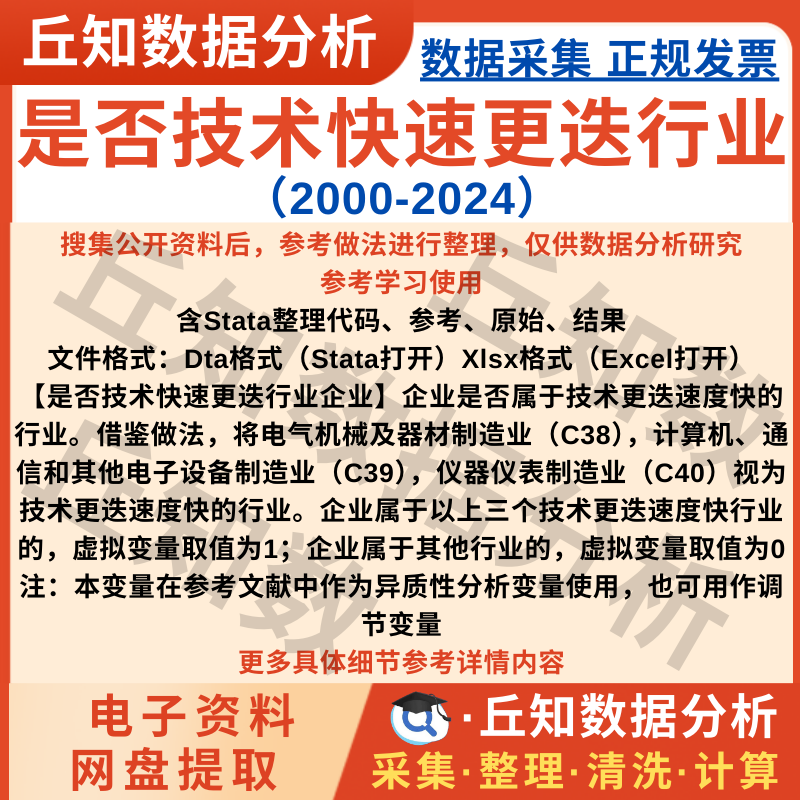 【普通数据】是否技术快速更迭行业企业2024-2000上市公司数据含Stata代码结果