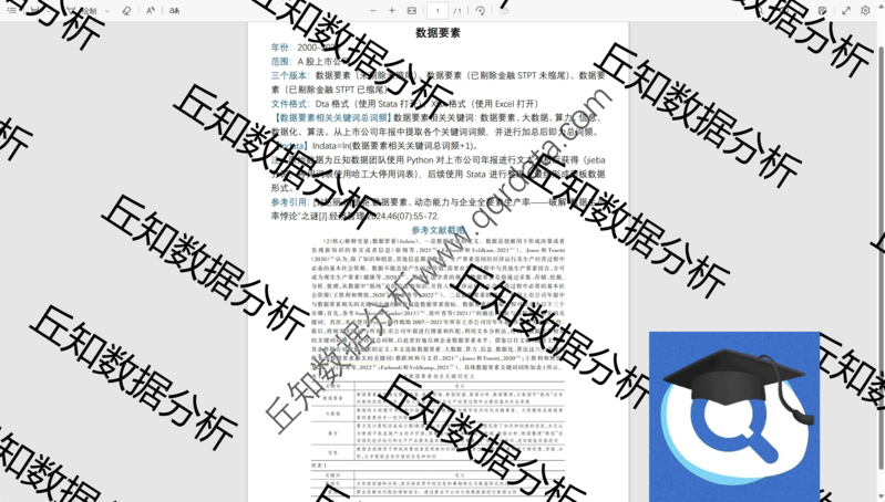 丘知数据分析会员之家,致力于提供高质量的社科数据搜集整理与分析服务,是国内领先的社科类数据服务商。在科研数据领域,我们认真对待每一位同学和老师的反馈,每年整理更新数千个变量指标,已累计服务数万科研工作者,在满足广大会员科研数据需求的同时全力提升售后服务质量,力求为大家提供高质量的社科数据服务! 在研究专题方面,我们搜集整理制作的数据专题包括但不限于:上市公司:管理层及治理、研发创新、投资融资、供应链、信息披露、会计审计税收、数字化、智能化、新质生产力、绿色发展、文本分析专题等;区域研究:空间计量、市场经济、科技创新、绿色发展、数字化、智能化、新质生产力、文本分析专题等。 丘知数据分析会员之家,每年更新推送近千个数据栏目,所有数据均支持单独购买,开通会员则可享受每日免费下载次数,欢迎老师同学们浏览订阅!如果您有定制需求也可以联系我们。