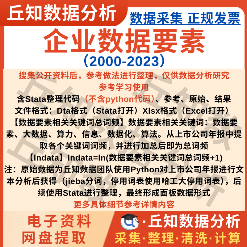 【普通数据】企业数据要素数据2023-2000年上市公司含Stata/Excel格式词频结果