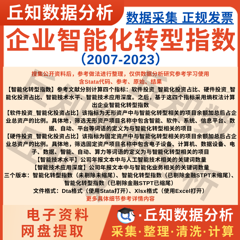 【普通数据】企业智能化转型指数2023-2007年数据熵权法 智能化投资及词频数据