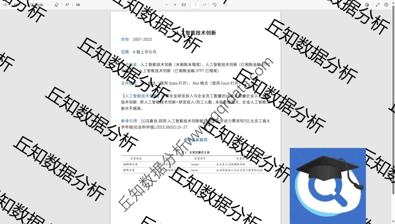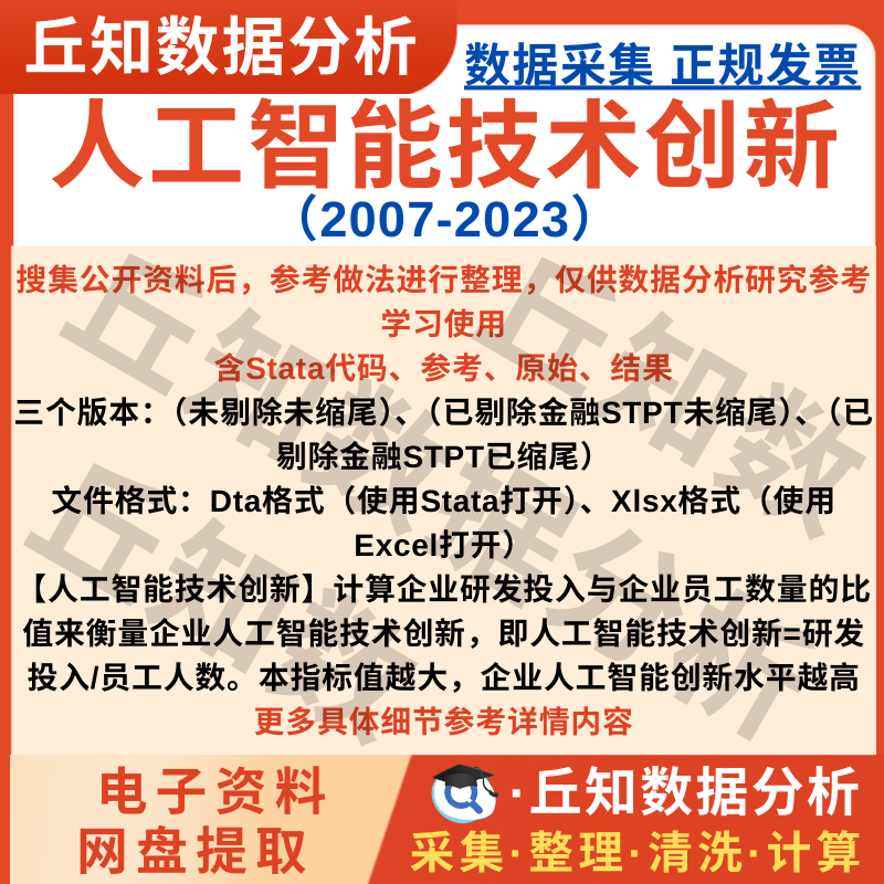 【普通数据】企业人工智能技术创新2023-2007年 上市公司数据 含Stata参考结果