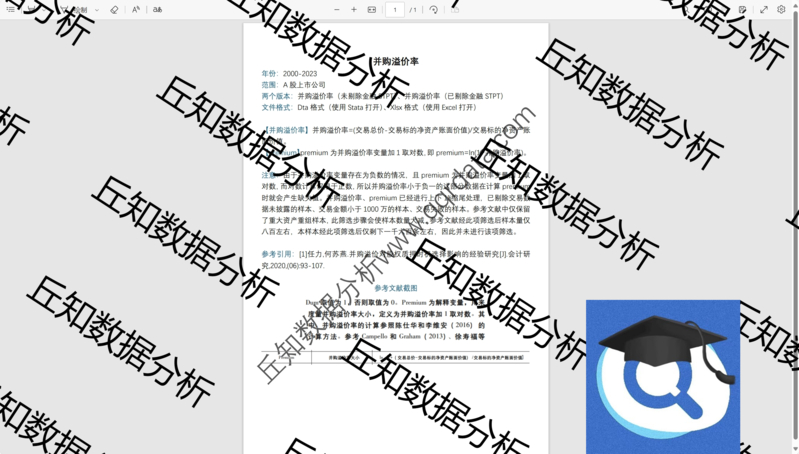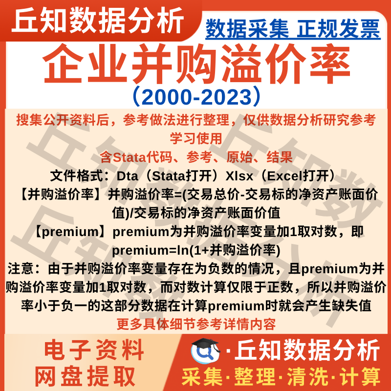 【普通数据】企业并购溢价率2023-2000年上市公司数据含stata代码含剔除缩尾版