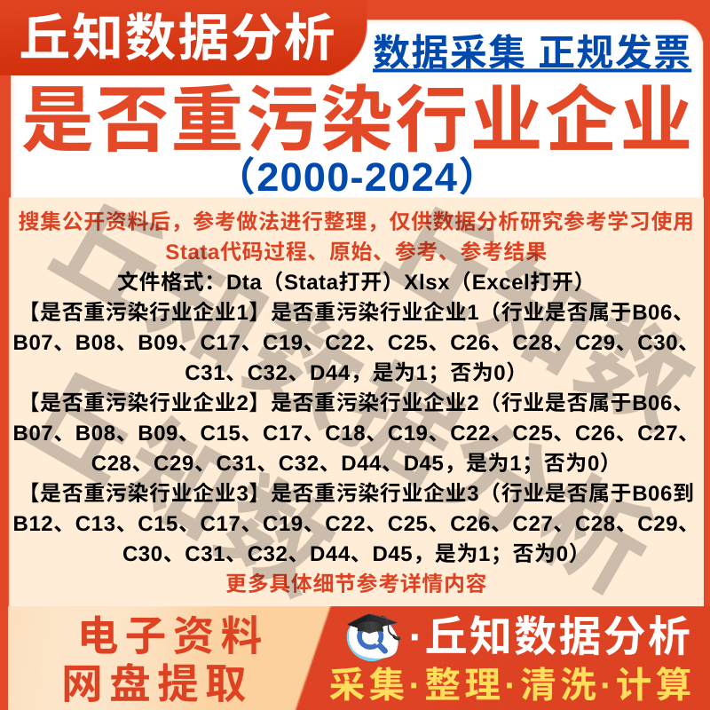 【普通数据】是否重污染行业企业2024-2000Stata计算代码上市公司分组异质数据
