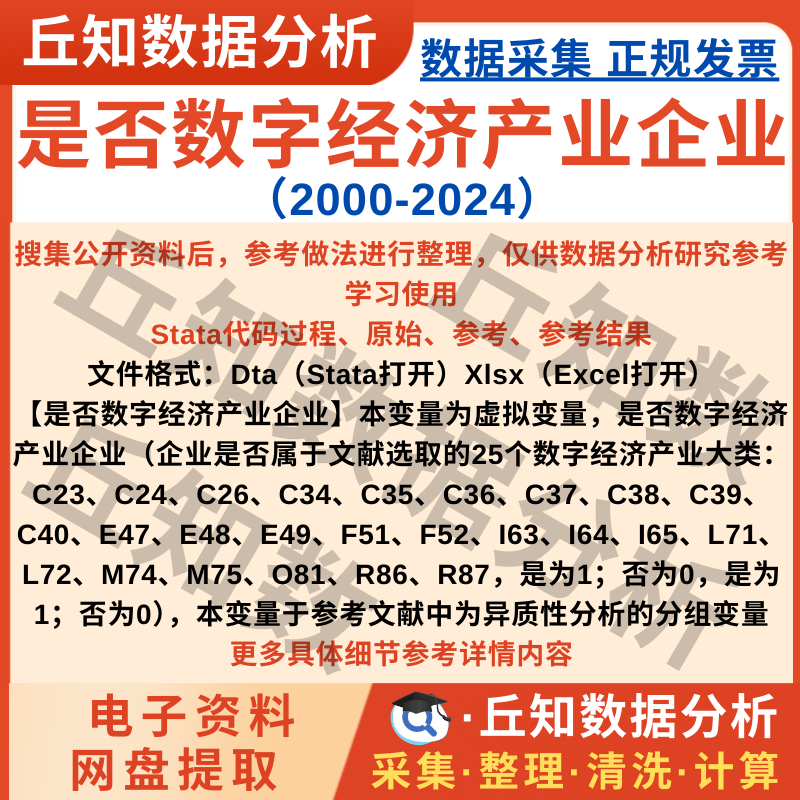 【普通数据】是否数字经济产业企业2024-2000Stata代码上市公司分组异质性数据