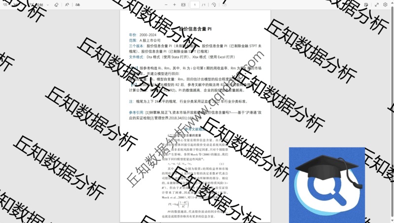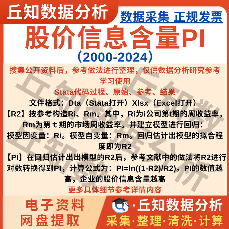【普通数据】股价信息含量PI计算2024-2000年含Stata代码过程参考上市公司数据