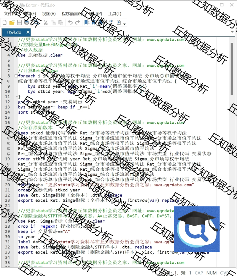【普通数据】RetSimga控制变量1991-2024Stata代码过程DO原始参考上市公司数据