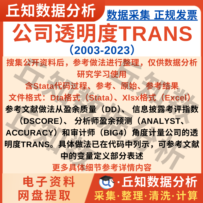 【普通数据】上市公司透明度2023-2003年TRANS综合指标数据含Stata过程原始Do