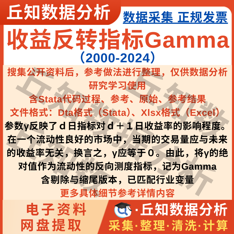【普通数据】上市公司收益反转指标Stata代码2024-2000年Gamma流动性反向测度