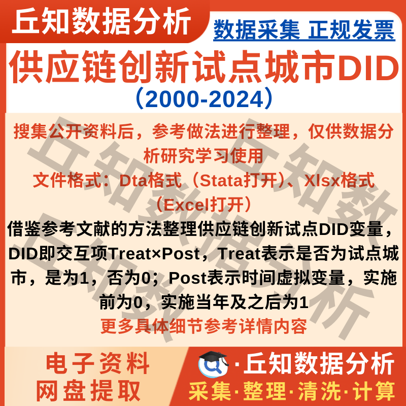 【高级数据】供应链创新试点城市2024-2000年DID虚拟变量Post*Treat数据 Excel