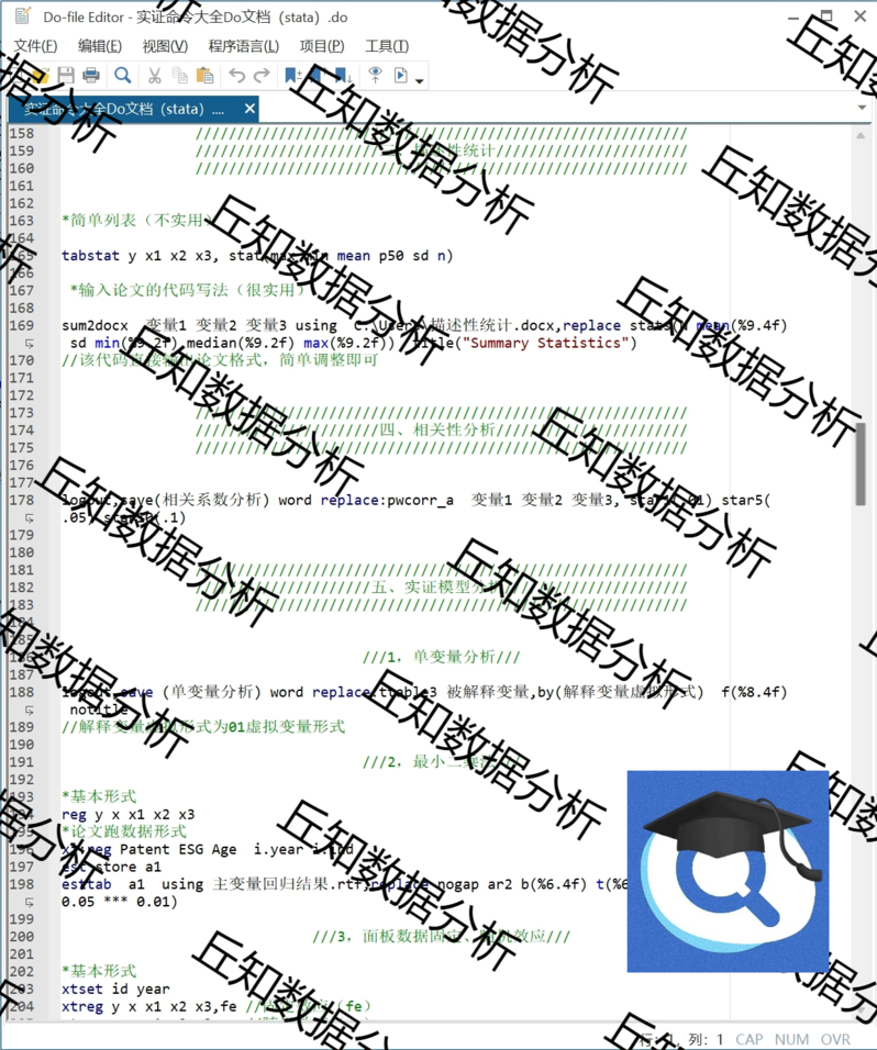 【普通数据】Stata实证常用代码大全,过程代码Do文档Stata命令代码实证分析