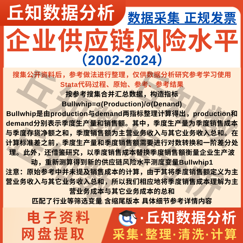【普通数据】企业供应链风险数据Bullwhip2024-2002Stata代码上市公司匹配行业