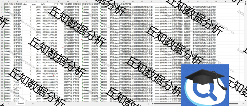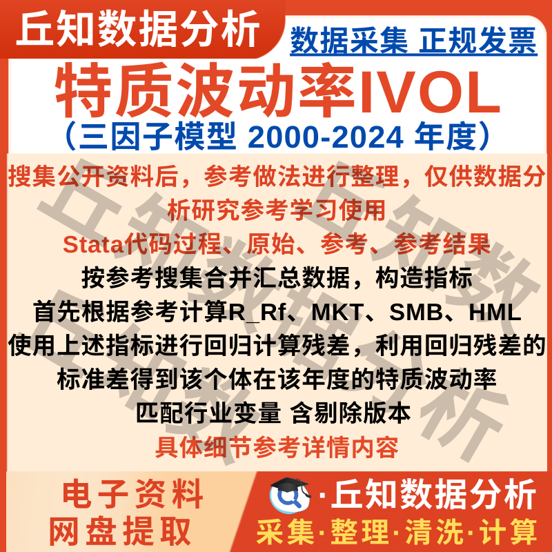 【普通数据】年度特质波动率IVOL三因子模型2024-2000年数据Stata代码上市公司