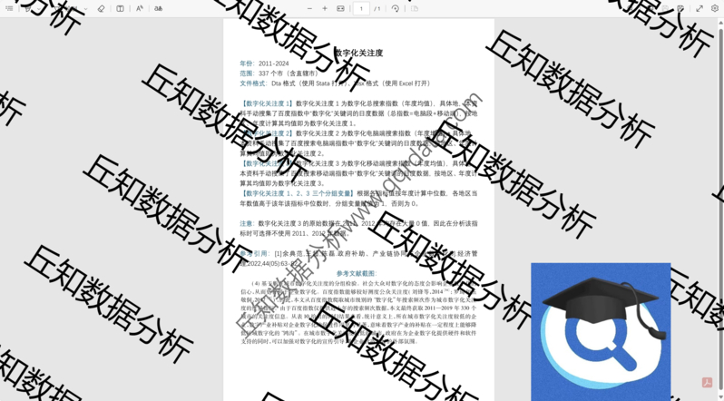 丘知数据分析会员之家,致力于提供高质量的社科数据搜集整理与分析服务,是国内领先的社科类数据服务商。在科研数据领域,我们认真对待每一位同学和老师的反馈,每年整理更新数千个变量指标,已累计服务数万科研工作者,在满足广大会员科研数据需求的同时全力提升售后服务质量,力求为大家提供高质量的社科数据服务! 在研究专题方面,我们搜集整理制作的数据专题包括但不限于:上市公司:管理层及治理、研发创新、投资融资、供应链、信息披露、会计审计税收、数字化、智能化、新质生产力、绿色发展、文本分析专题等;区域研究:空间计量、市场经济、科技创新、绿色发展、数字化、智能化、新质生产力、文本分析专题等。 丘知数据分析会员之家,每年更新推送近千个数据栏目,所有数据均支持单独购买,开通会员则可享受每日免费下载次数,欢迎老师同学们浏览订阅!如果您有定制需求也可以联系我们。